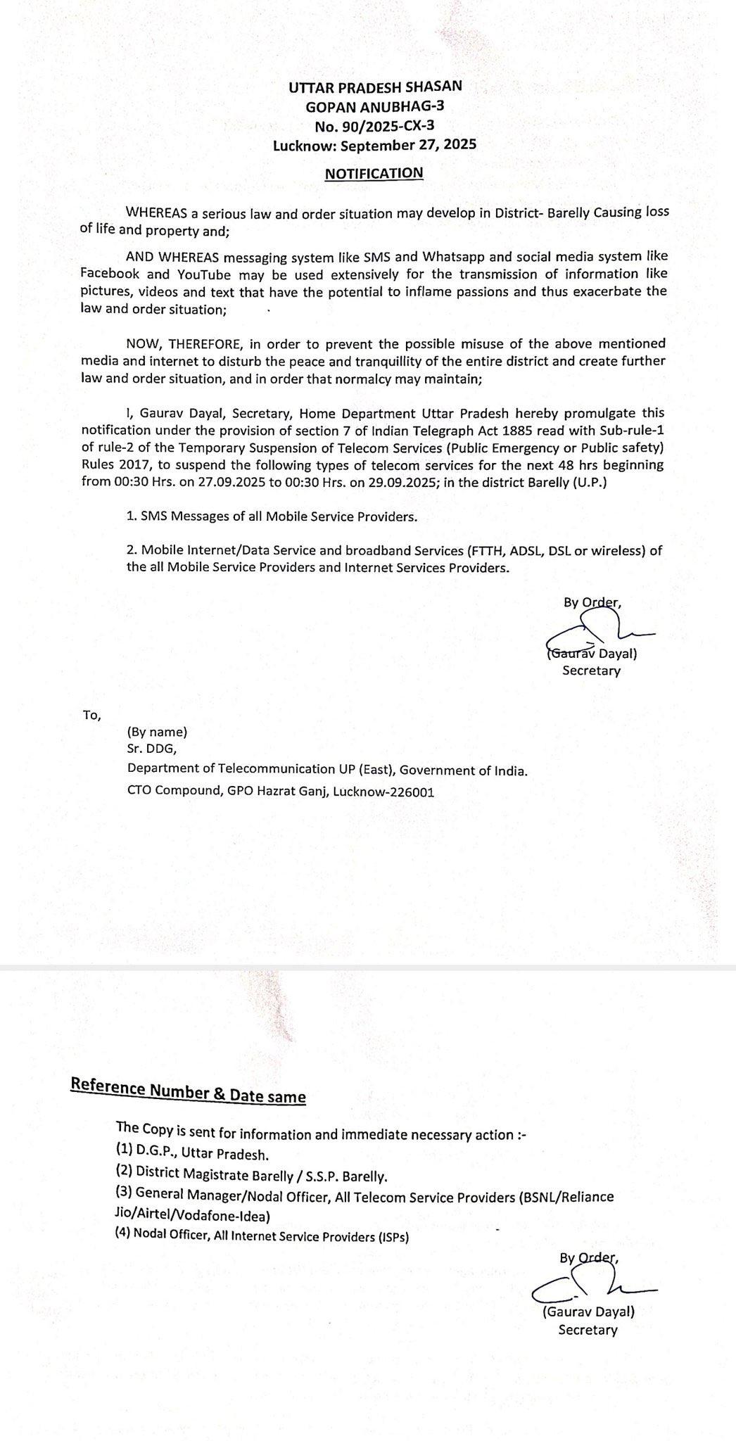 गौरतलब है कि कल जिलाधिकारी ने हिंसा के बाद स्थिति नियंत्रण में होने की बात करते हुए आश्वस्त किया था कि पूरे जिले में शांति है और शनिवार को स्कूल-कॉलेज खुलेंगे। पर आज तौकीर रजा की गिरफ्तारी के बाद जिलेभर में इंटरनेट बंद कर दिया गया। बरेली पुलिस प्रशासन का कहना है कि गिरफ्तारी के बाद गलत सूचनाओं को फैलने से रोकने व माहौल को नियंत्रण में रखने का हवाला देकर 48 घंटों के लिए इंटरनेट बंद कर दिया गया है।