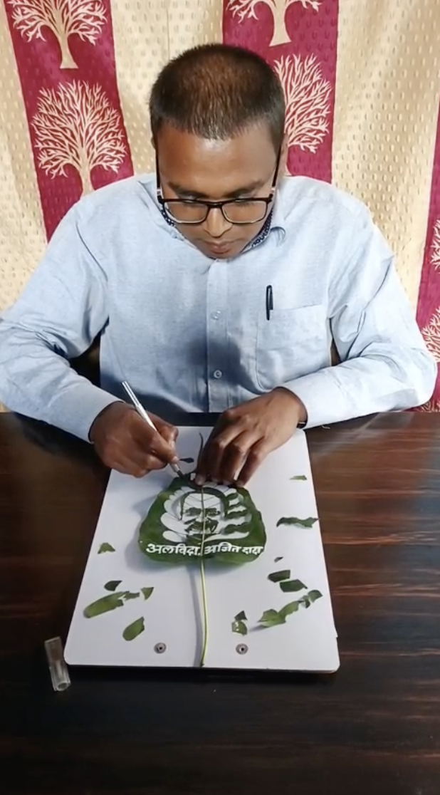 - सूखी पत्ती पर उकेरी महाराष्ट्र के दिवंगत उपमुख्यमंत्री की तस्वीर