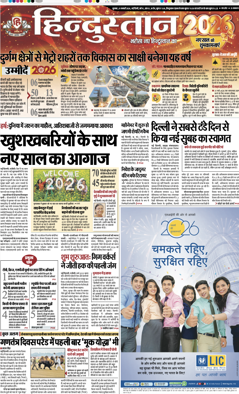 साल 2026 के पहले दिन के अखबारों के बारे में जानना रोचक है। हिन्दी के अखबारोें ने नए साल के जश्न और साल की शुरुआत पॉजिटिव खबरों के साथ करने की कोशिश की है, जबकि अंग्रेजी के अखबारों ने किसी भी खबर को जबरन न्यू ईयर फ्लेवर देने की कोशिश नहीं की है।