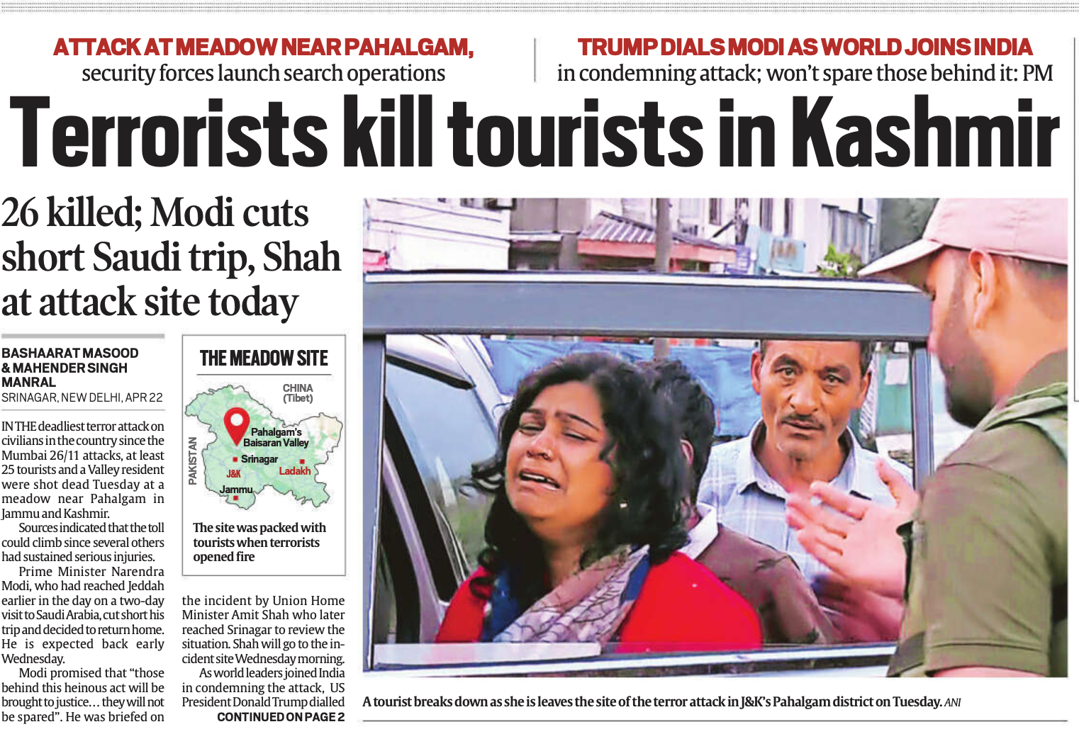 पहलगाम आतंकी हमले पर अखबारी कवरेज