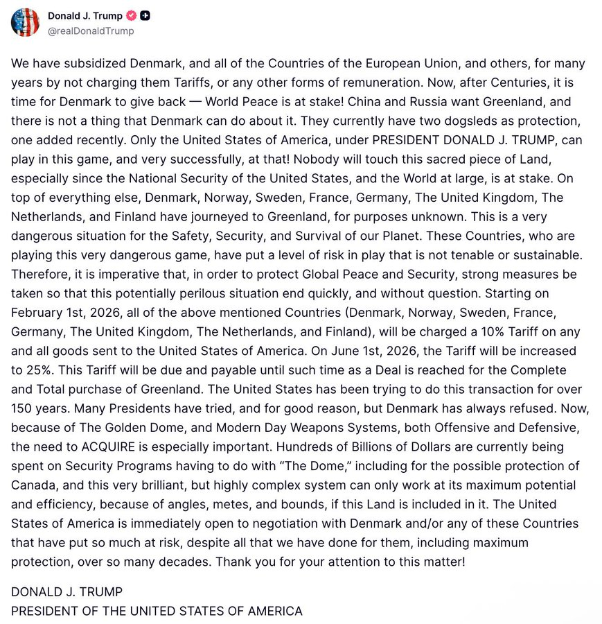 प्रधानमंत्री कीर स्टार्मर ने कहा- “ग्रीनलैंड का भविष्य ग्रीनलैंडवासी और डेनमार्क तय करेंगे। नाटो सहयोगियों की सामूहिक सुरक्षा सुनिश्चित करने के लिए अपने सहयोगियों पर ही टैरिफ लगाना पूरी तरह गलत है। हम इस मुद्दे पर सीधे अमेरिकी प्रशासन से बात करेंगे।”