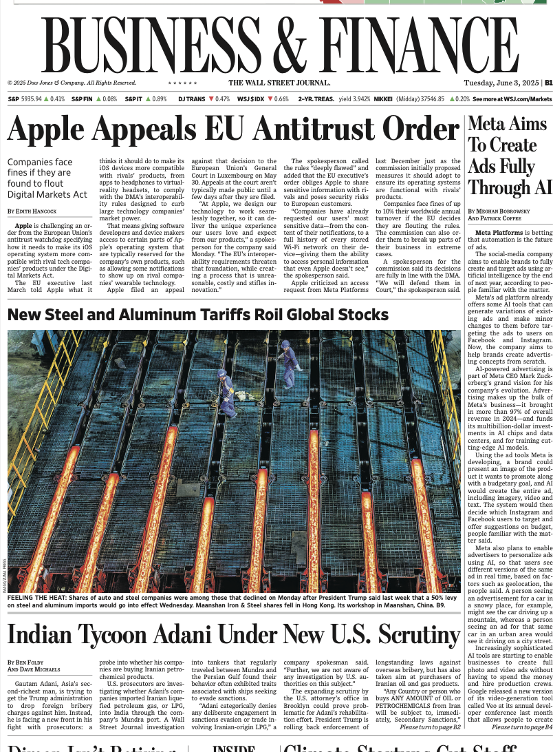 अखबार ने इस मामले में अदाणी के बयान को भी प्रमुख ख़बर में छापा है जिसमें कहा गया है कि – अदाणी समूह की कंपनियों और ईरानी एलपीजी के बीच संबंध का आरोप लगाने वाली वॉल स्ट्रीट जर्नल की रिपोर्ट निराधार और नुकसान पहुंचाने वाली है। अदाणी जानबूझकर किसी भी तरह के प्रतिबंधों से बचने या ईरानी एलपीजी से जुड़े व्यापार में संलिप्तता से साफ़ इनकार करता है। हमें इस विषय पर अमेरिकी अधिकारियों द्वारा किसी भी जांच की जानकारी नहीं है।